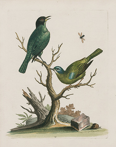 Natural History and Gleanings was illustrated for the first time many foreign species often drawn from live specimens held in captivity in London. Edwards etched his own plates and then hand colored several copies before supervising others in the coloring. The result is a work of superb skill and breathtaking color that remains ever popular and is now increasingly rare. Such was the impact of Natural History and Gleanings, that Edwards is considered to have almost single-handedly popularized the art of bird and animal illustration, and is thus known as “The Father of British Ornithology.”