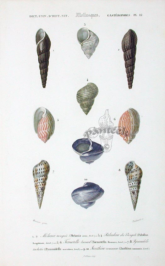 We are currently offering a selection of prints from the first edition of Charles D’Orbigny’s Dictionnaire Universel d’Histoire Naturelle published in 1849 by Renard & Martinet, Paris. As keen collectors of such works, we are delighted to obtain this one, considered by many experts to be the finest and best illustrated natural history work of the era. The superb, beautifully hand colored plates are from the leading French artists of the day such as Susemihl, Travies, Oudart and Pretre. There is no text, but the order, genus & species is on each print in Latin & French. References include Nissen ZBI, 4617; Wood